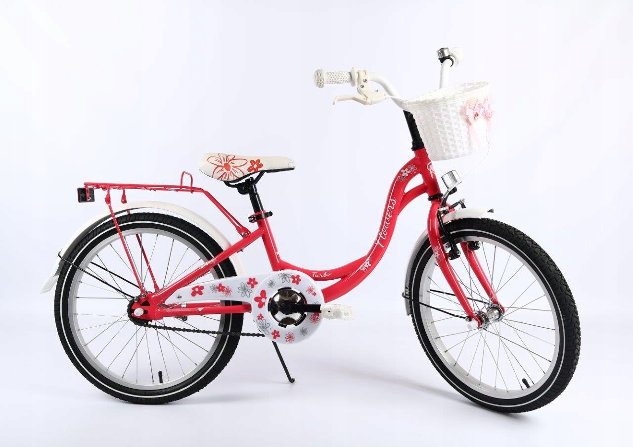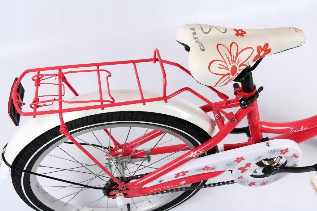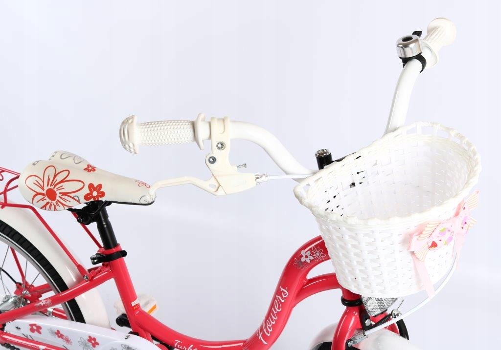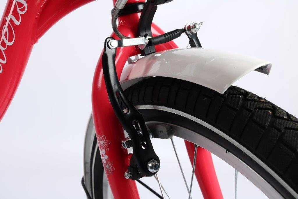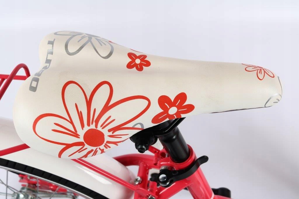 - Styl: Atrakcyjny biało-czerwony kolor z motywem kwiatów, idealny dla młodych rowerzystek.