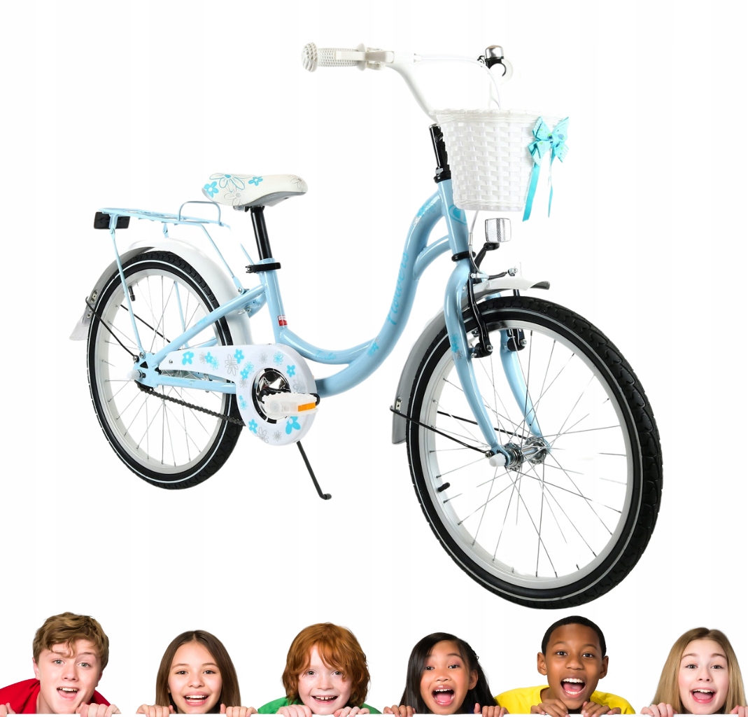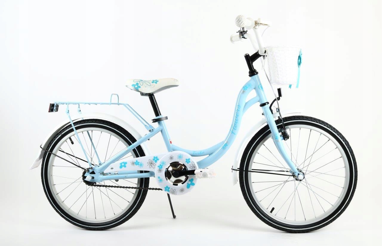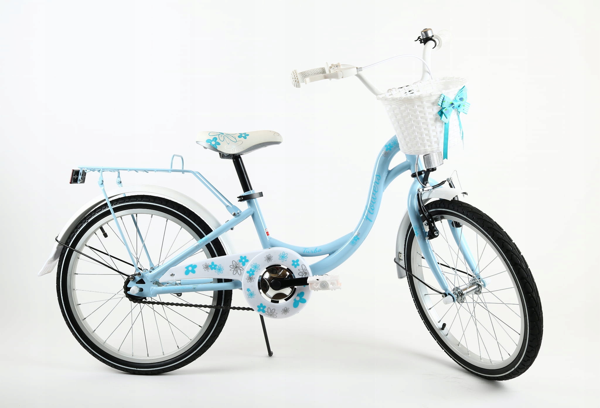 Rower dla Dziewczynki Dziecięcy + Koszyk od 5+ Lat 20″Cali Flowers Błękitny