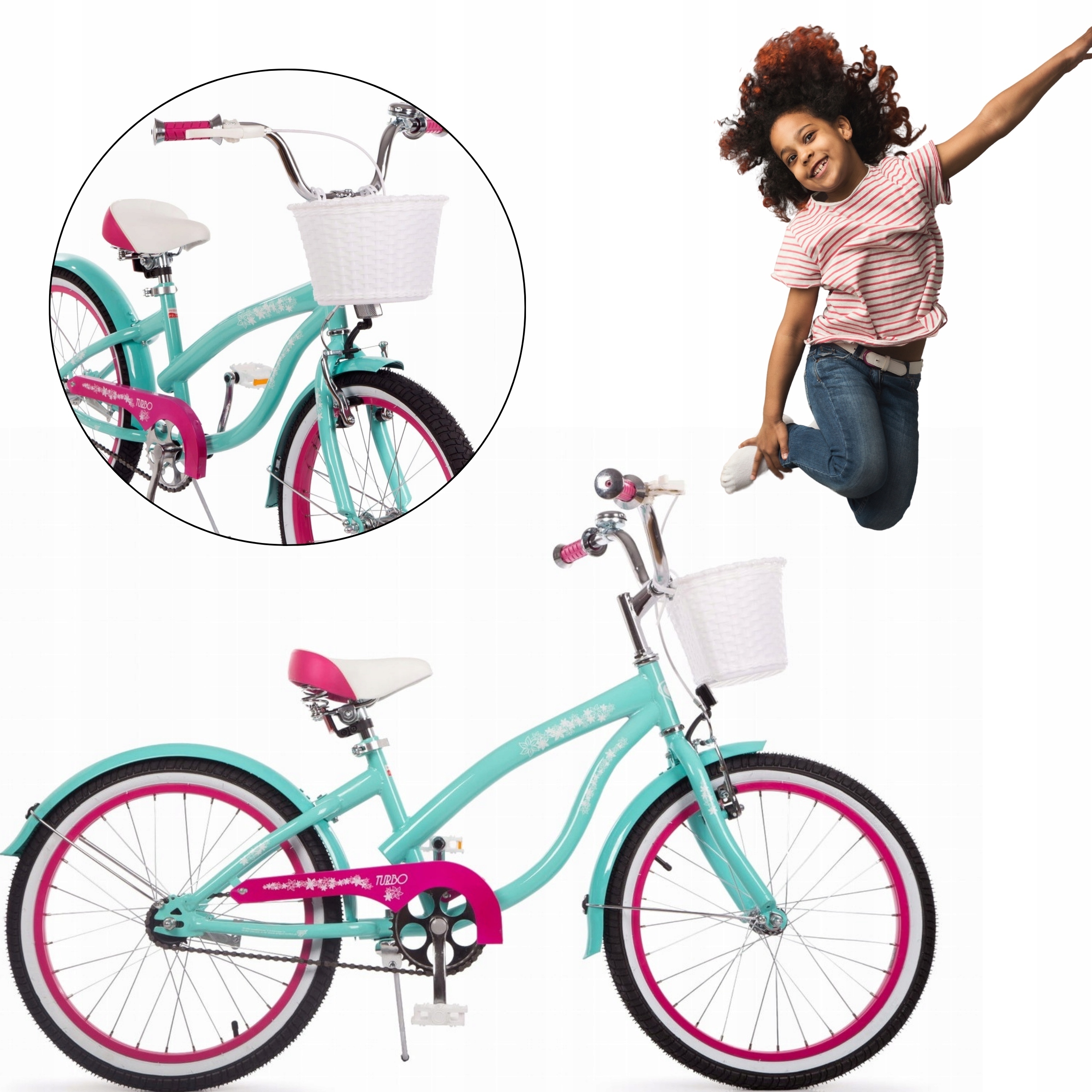 Rower CRUISER 20″ to idealny wybór dla dziewczynek od 5 lat, łączący stylowy design z wysoką jakością wykonania. Wyposażony w praktyczny koszyk, odblaski, dzwonek i inne akcesoria, ten rower zapewnia nie tylko komfort, ale także bezpieczeństwo podczas jazdy.